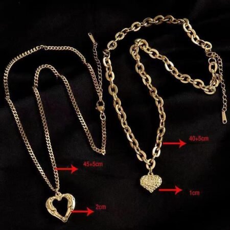 $8.32 – $12.55Price range: $8.32 through $12.55Rated 4.53 out of 5Overview: Unique design, stylish and beautiful. High quality, comfortable wear. Product information: Treatment Process: Electroplating Color: 8018 smart Love Applicable population: Female Material: titanium steel Shape: heart shape Popular elements: Love/heart Perimeter: 21cm (inclusive)-50cm (inclusive) Size: Length: 40+5cm Packing list: Necklace X1 Product Image: