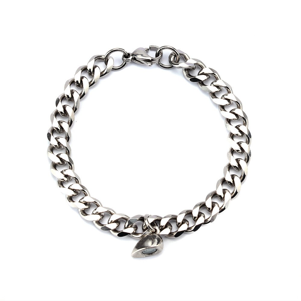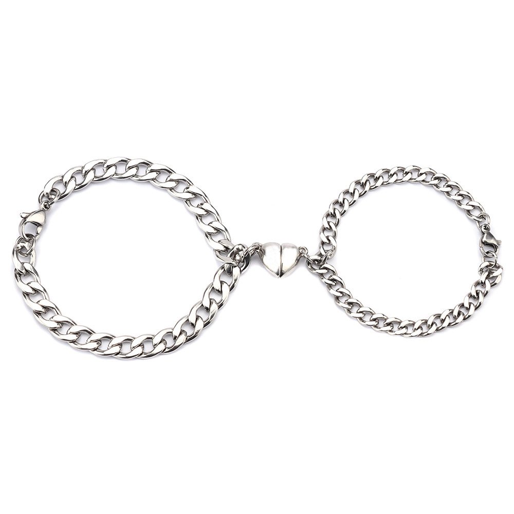 Product Information: Style: simple Material: titanium steel Kind: Bracelet Style: couple style Shape: heart shape Packaging: Individually packed Color: A: Cuban chain, B: NK chain   Packing List Bracelet*1 pair